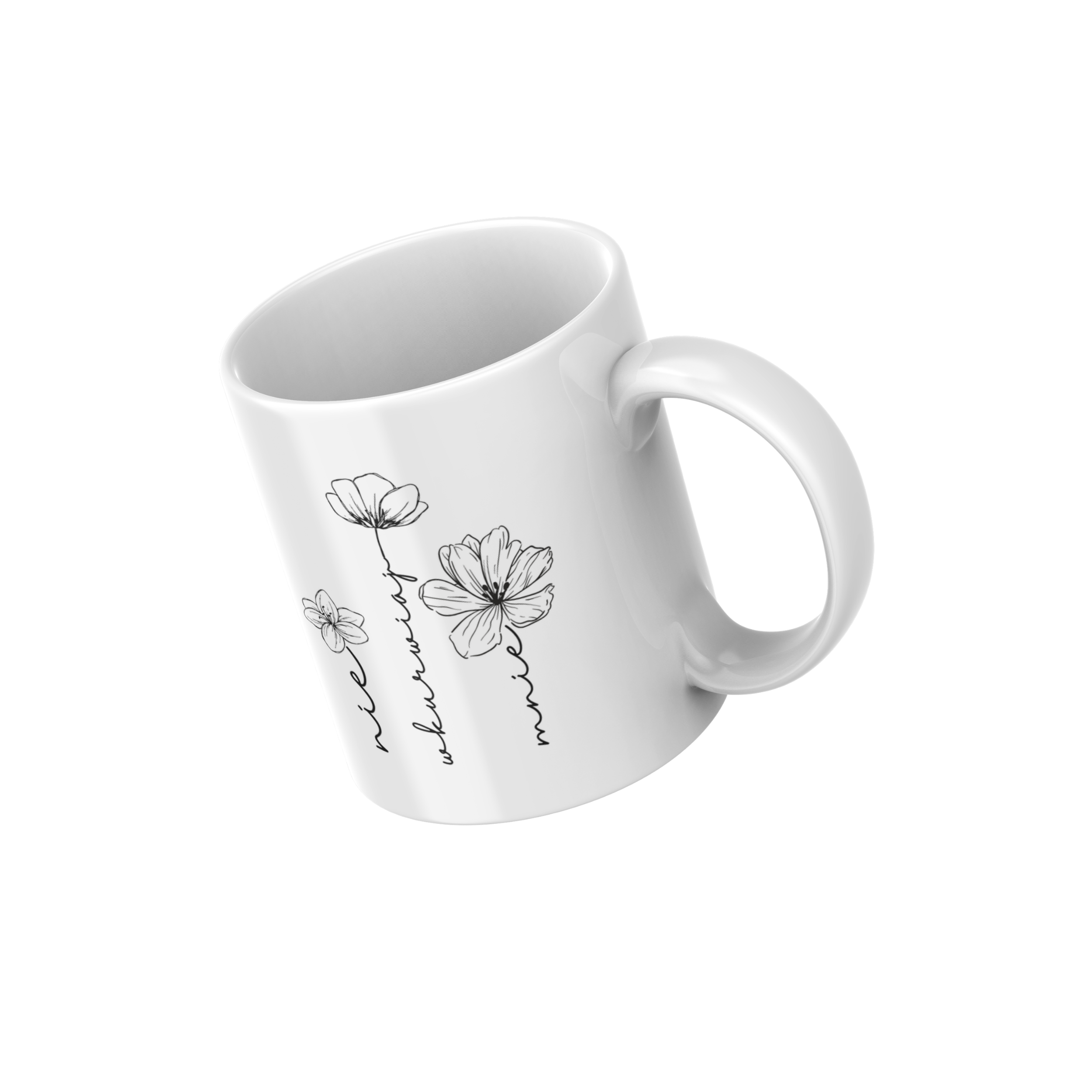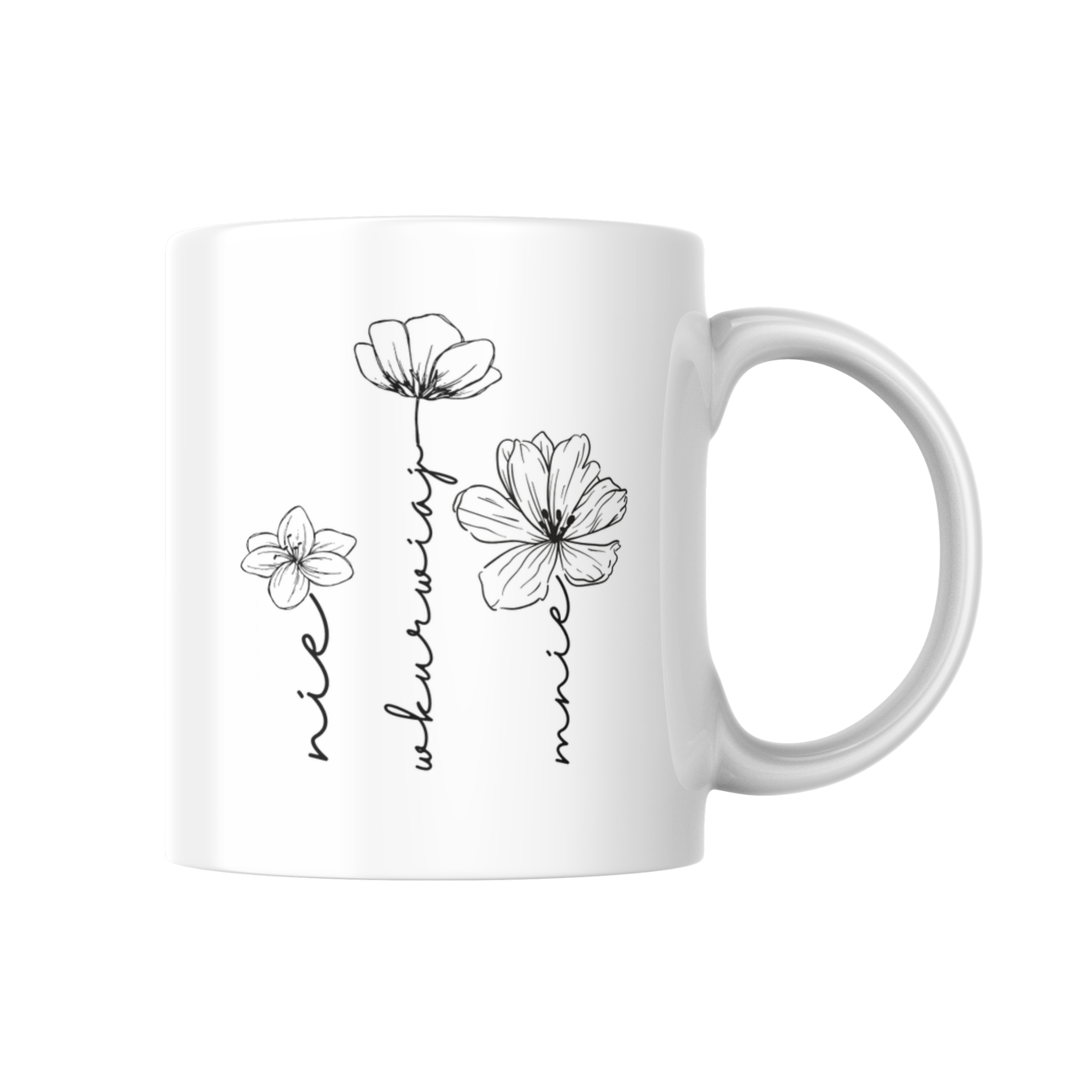 Bezpieczeństwo i Trwałość: Nadruk wykonany w technologii, która nie boi się zmywarki. Kwiaty i tekst pozostaną wyraźne nawet po setkach wspólnych poranków.